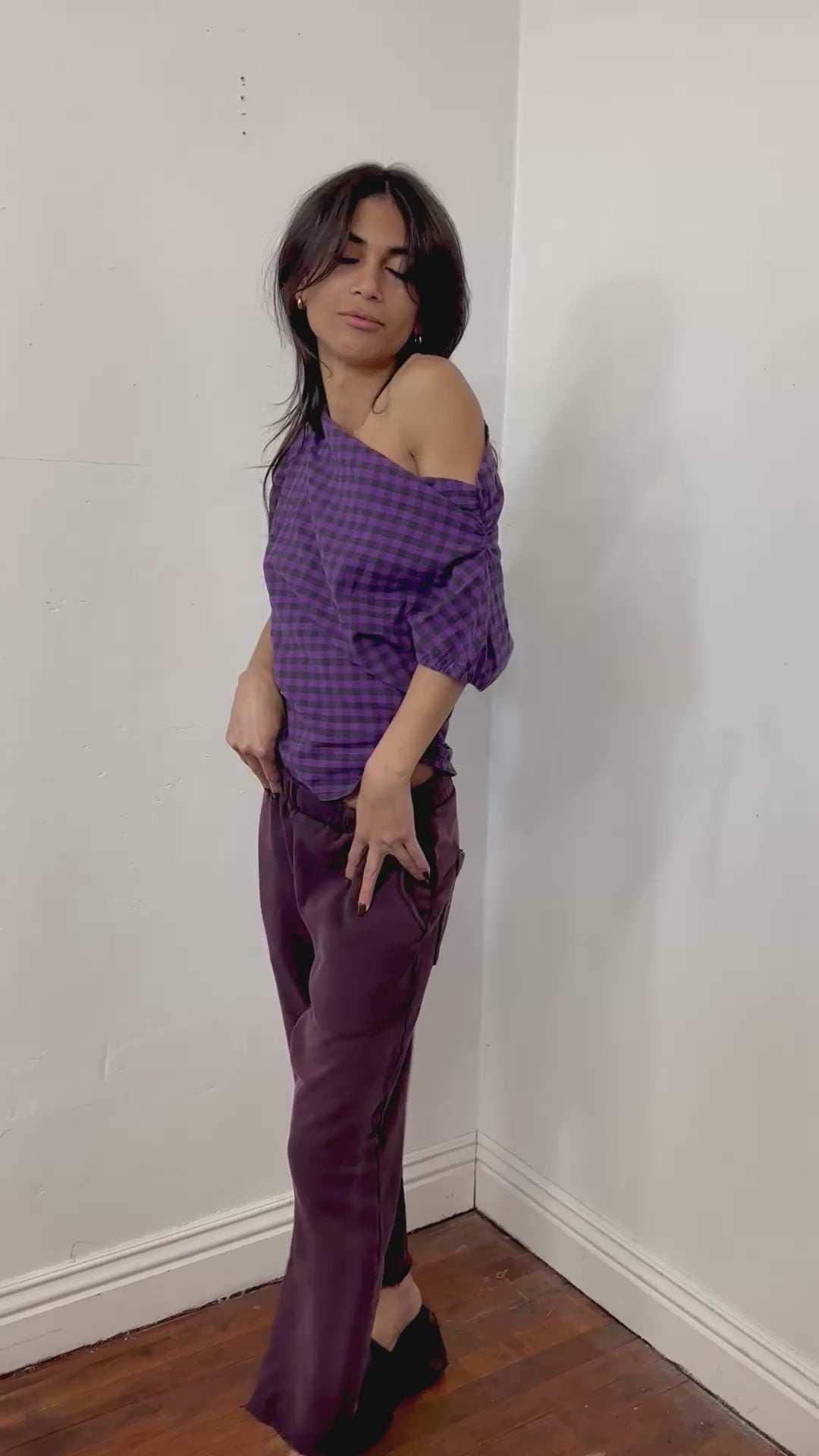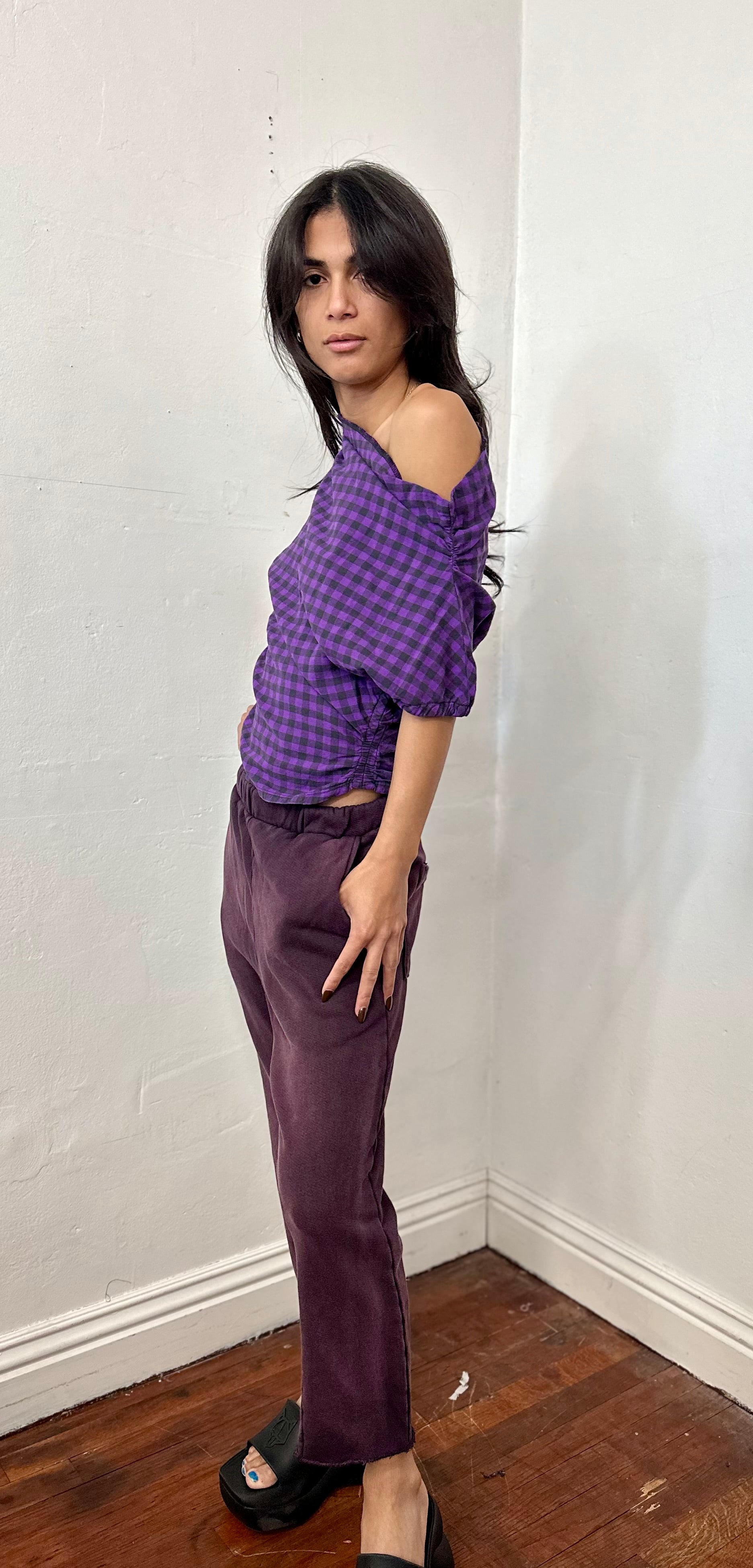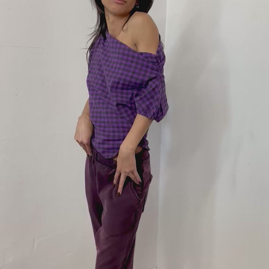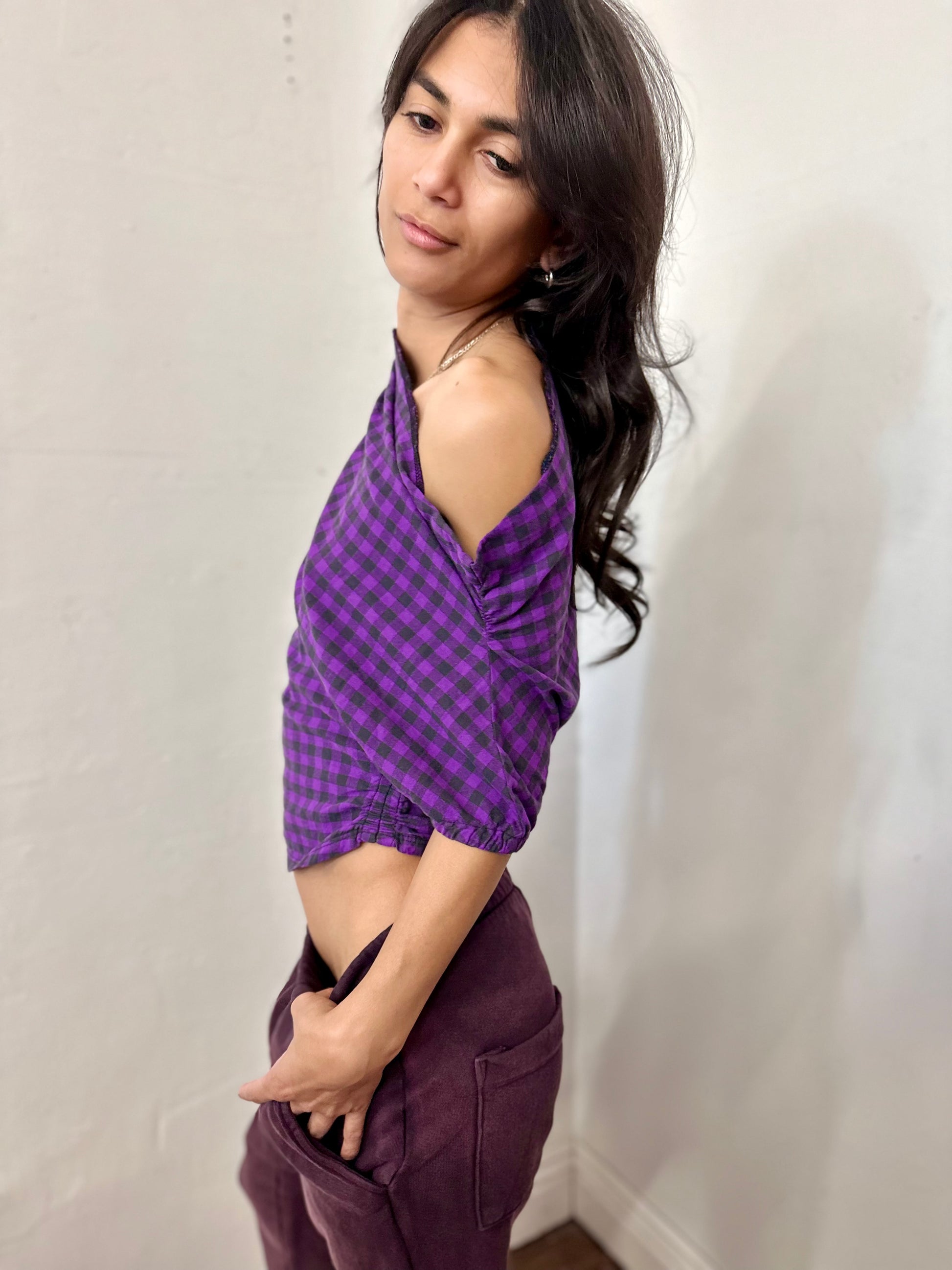 Off shoulder side elastic cotton rushed top