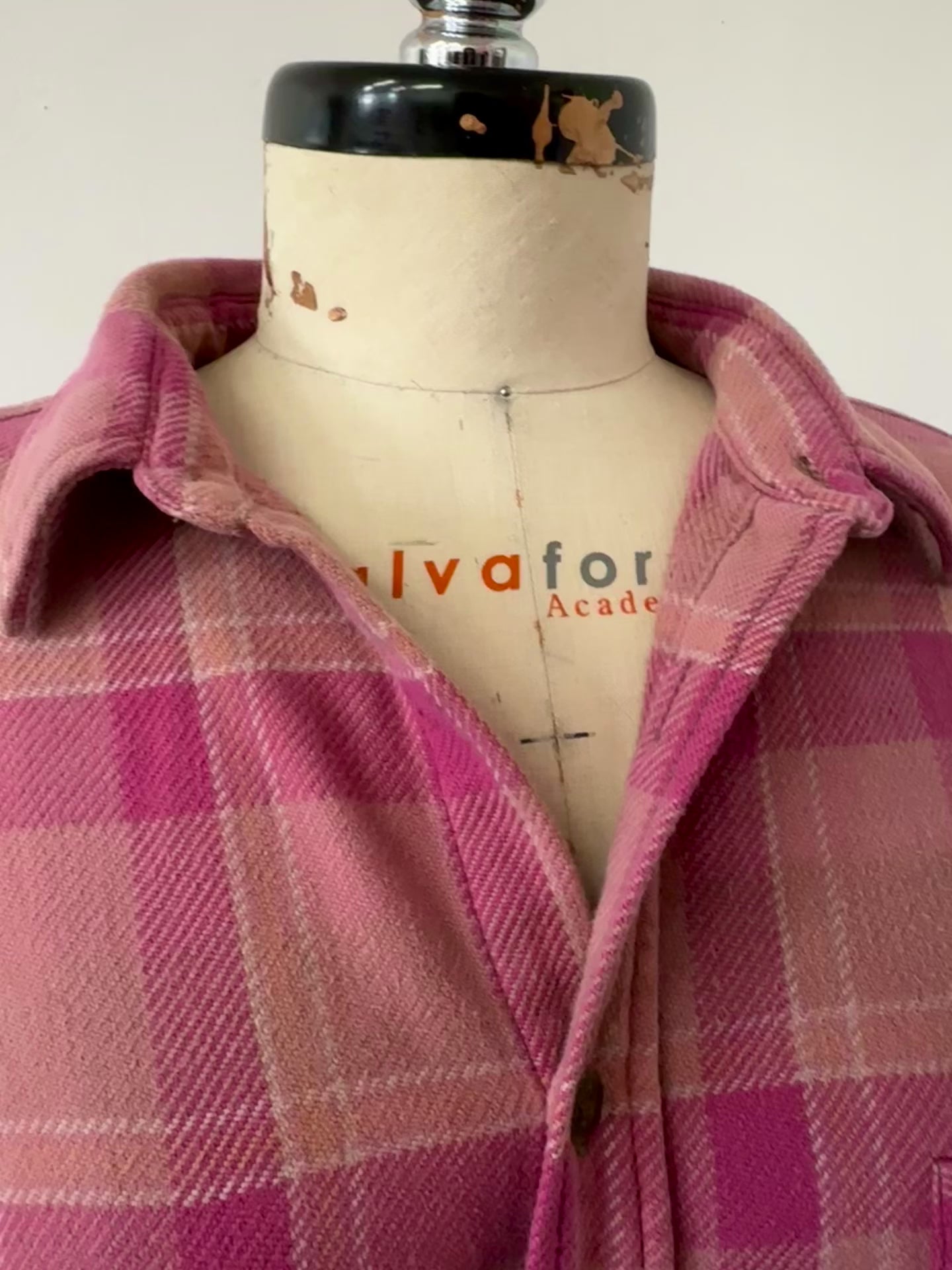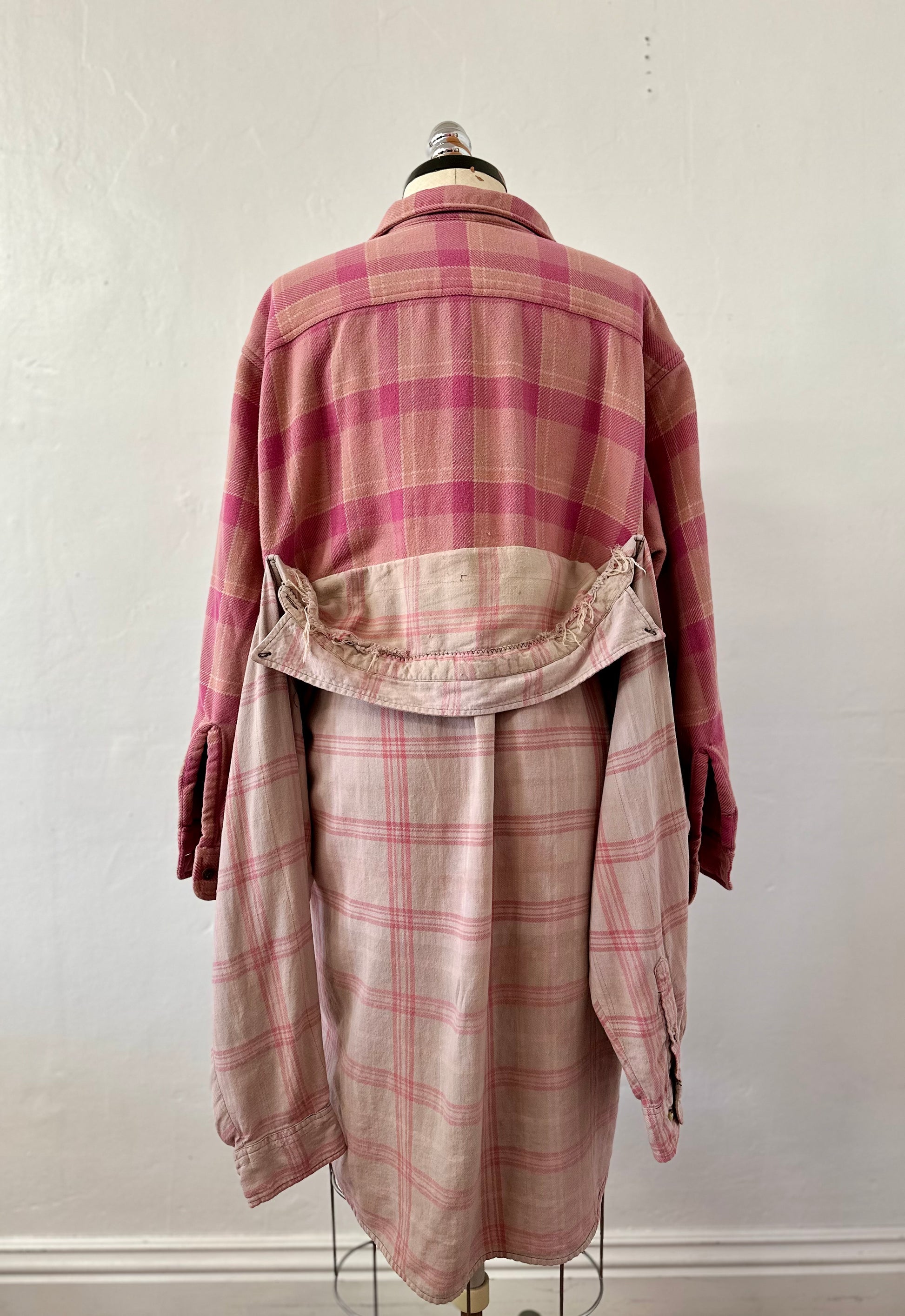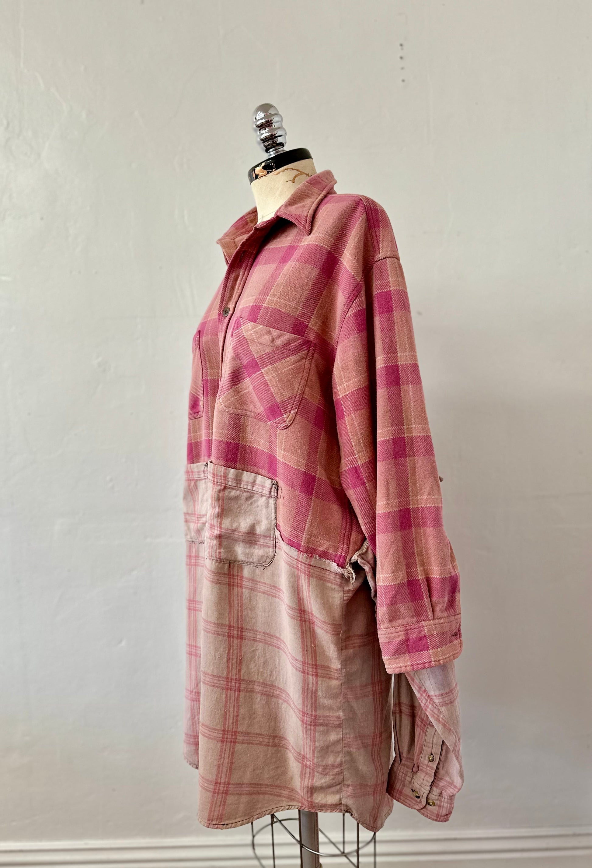 Ragtofab Upcycle Pink and cream plaid cotton shirt dress with pockets